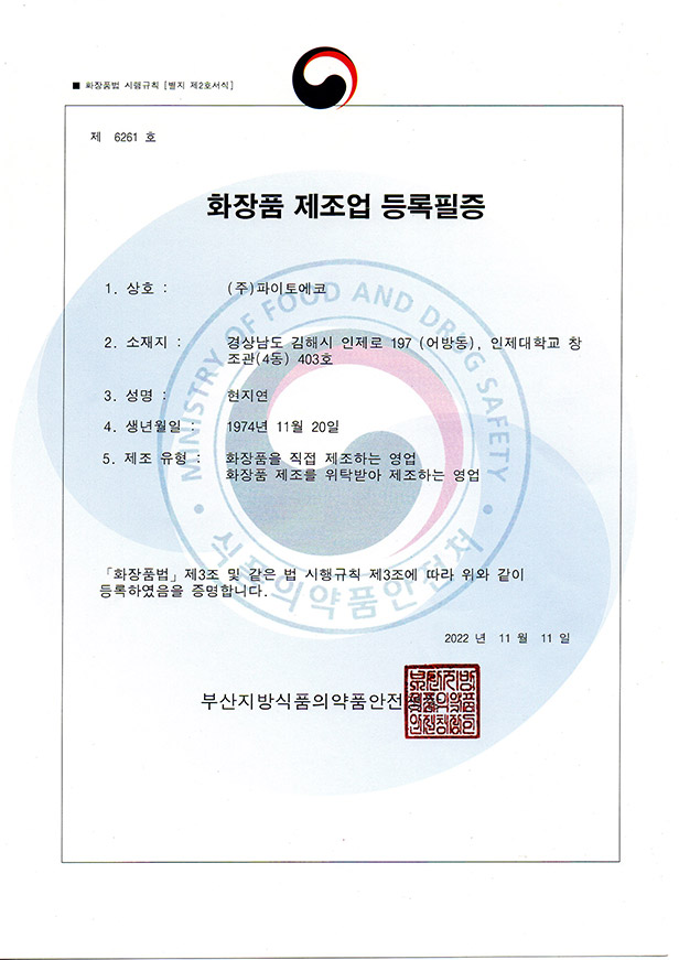 Certification as a women’s business / Gyeongnam Regional SME and Venture Business Office / Initial certification date March 27, 2020~