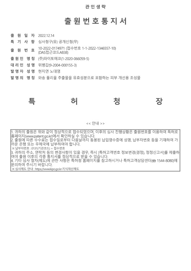 [Patent number 10-2017377] Cosmetic formulation for skin improvement including rock pine extract